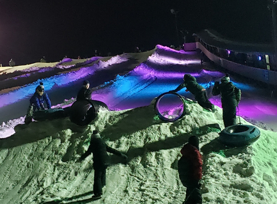 Experience the thrill of racing your friends and family down our snow-covered Tube Hill, then hitch a ride on our state-of-the-art magic carpet lift to do it all again! It’s so much fun it’ll knock your mittens off — but don’t worry, our warming hut will keep you toasty. All tubers must be at least 3 years old, and there are no skills or lessons required.